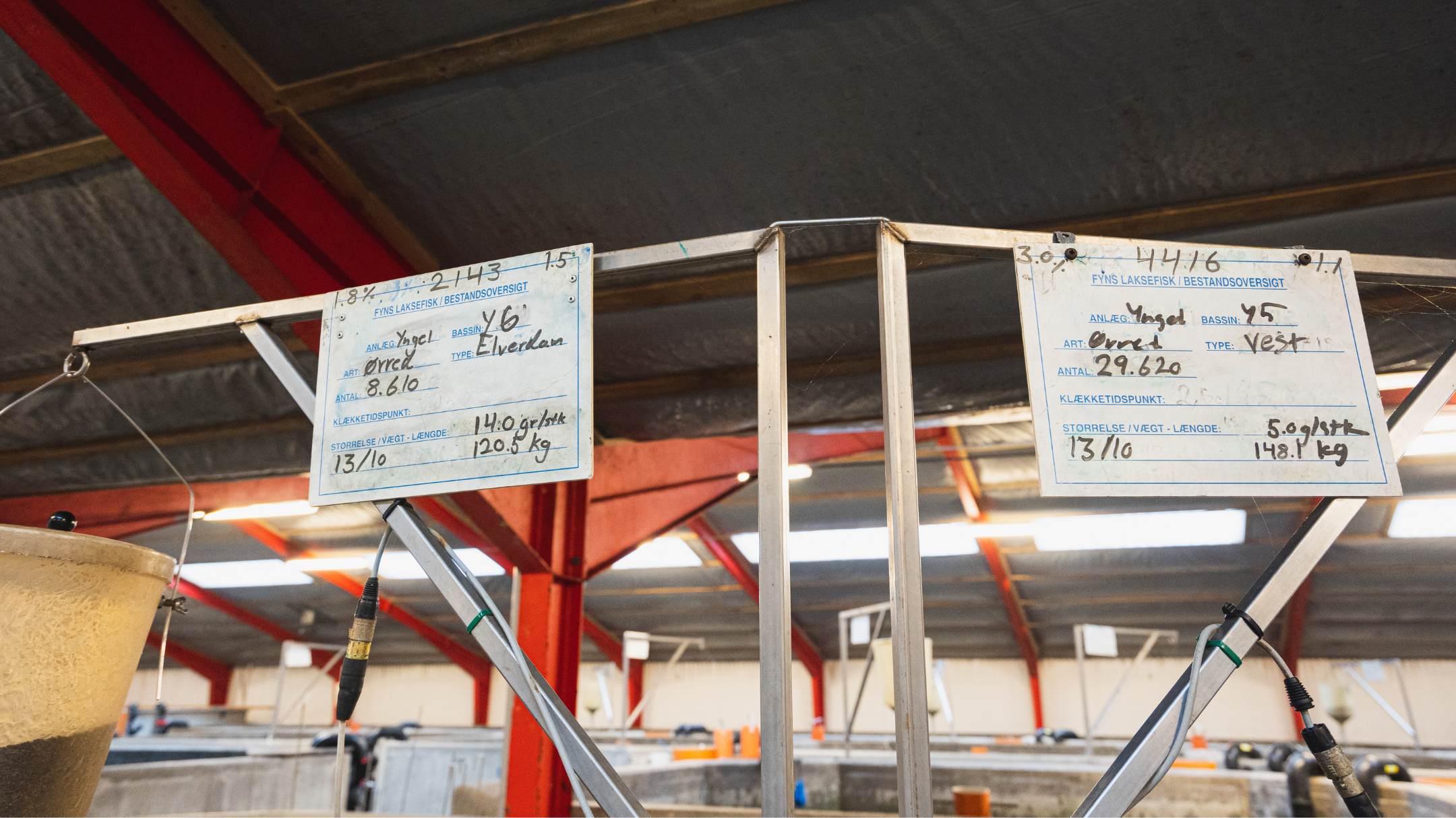 Fyns Laksefisk holder moderfiskene i store kar, hvor de går sammen med andre fisk fra samme område – øst, vest eller Odense Fjord.