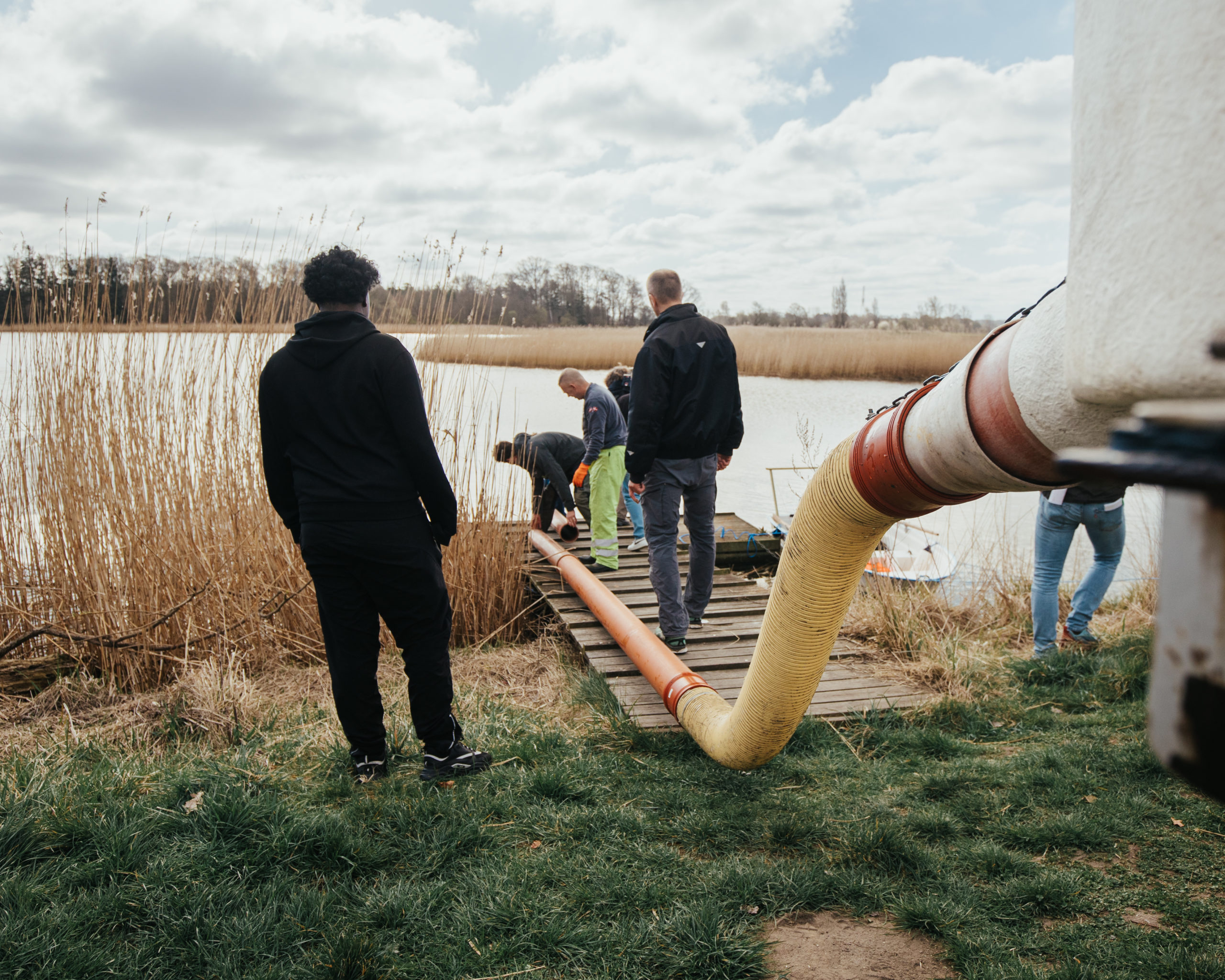 Ved årets smoltudsætninger på Fyn og Øerne blev der ikke kun sat cirka 400.000 havørredsmolt ud i vandløbene – der blev også afprøvet en helt ny metode til at beskytte de små fisk i deres mest sårbare fase: Vi tog nemlig både flyvende og sejlende droner i brug som smoltvagter.