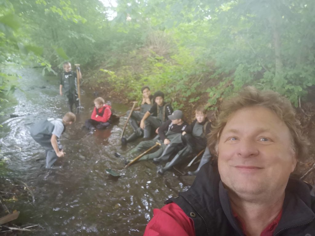 Willy og eleverne fik renset nogle gydebanker og derved gjort en vigtig indsats for ørrederne der trækker op i Lindved å. Godt arbejde, alle mand!